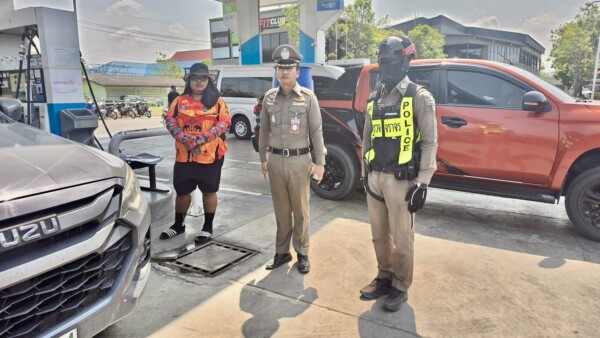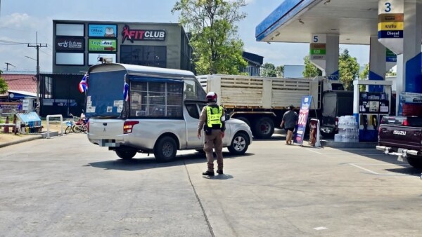 ผกก.ดอนตูม ดูแลการจราจร หลังรถติดรอเติมน้ำมัน