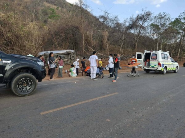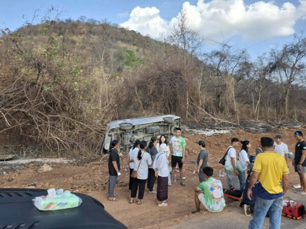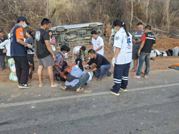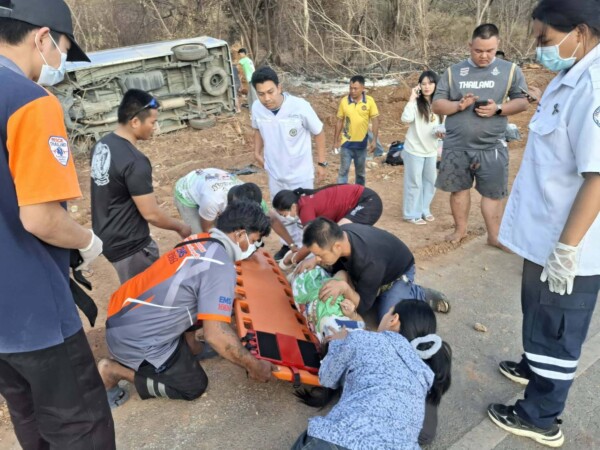 โดยที่ เกิดเหตุพบ รถตู้ โตโยต้า สีบรอนซ์ เงิน ทะเบียน ฮว 8785 ติดสติ๊กเกอร์ด้านข้างสมาคมกีฬายกน้ำหนักสมัครเล่นแห่งประเทศไทย เสียหลักแหกโค้งพลิกคว่ำตกลงข้างทางหมุนกลับทางเดิมมีผู้บาดเจ็บสาหัส บริเวณทางโค้ง ถนนสายบ้านหัวสะพาน-ซับมงคล สภาพรถพังยับเยิน ส่งผลให้ผู้โดยสารมากับรถบาดเจ็บจำนวน 9 ราย เป็นหญิง 3 ราย และชาย 6 ราย จนท.หน่วยกู้ภัย ปภ.นายางกลัก กู้ชีพ อบต.โป่งนกและแพทย์จากรพ.ซับใหญ่ได้ช่วยกันลำเลียงผู้บาดเจ็บส่ง รพ.ซับใหญ่เป็นการด่วน