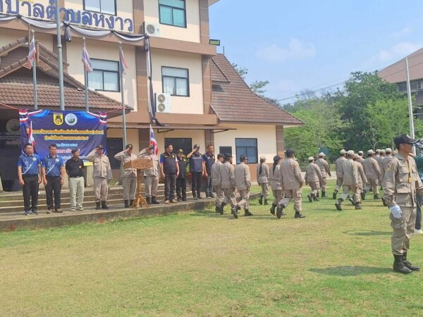 พ.ต.ต.วรเมธ ธรรมจันตา นายกเทศมนตรีตำบลหงาว อำเภอเทิง เปิดกิจกรรมสวนสนาม อปพร. ยิ่งใหญ่ เชิดชูเกียรติอาสาสมัครทำงานเพื่อสังคม