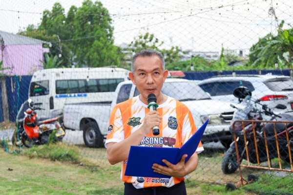 พ.ต.อ.เลิศศักดิ์ เขียมทรัพย์ ผกก.สน.หลักสอง เปิดพิธีฟุตบอลหลักสองคัพ 2026