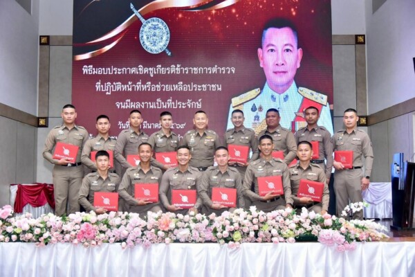 สำนักงานตำรวจแห่งชาติ (23 มี.ค. 2569) – พล.ต.อ.กิตติ์รัฐ พันธุ์เพ็ชร์ ผบ.ตร. เป็นประธานพิธีมอบประกาศเชิดชูเกียรติข้าราชการตำรวจและประชาชน ตามโครงการ “ทำดีมีรางวัล ทำไม่ดีมีโทษ” มุ่งสร้างขวัญกำลังใจแก่ผู้ปฏิบัติหน้าที่ด้วยความเสียสละ กล้าหาญ และช่วยเหลือประชาชนจนเป็นที่ประจักษ์