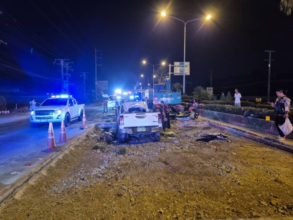 นครปฐม-สลด 3 พ่อแม่ลูก ขับกระบะตกถนนซ่อมสร้างดับคารถ 3 ศพ