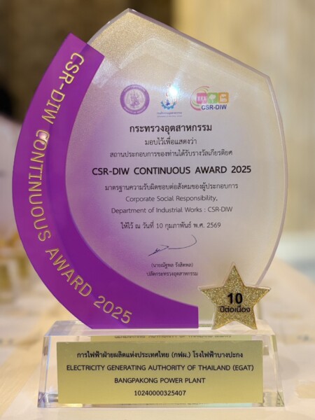 วันที่ 25 มีนาคม 2569 การไฟฟ้าฝ่ายผลิตแห่งประเทศไทย (กฟผ.) โดยโรงไฟฟ้าบางปะกง สร้างความภาคภูมิใจอีกครั้ง ด้วยการคว้ารางวัล CSR-DIW Continuous Award ประจำปี 2568 พร้อมรางวัลพิเศษประเภท “10 ปีต่อเนื่อง” นับเป็นปีที่ 14 ที่ได้รับรางวัลอย่างต่อเนื่อง สะท้อนการรักษามาตรฐานการดำเนินงานด้านความรับผิดชอบต่อสังคม ควบคู่การเป็นโรงไฟฟ้าสีเขียวที่เติบโตเคียงข้างชุมชนและสังคมอย่างยั่งยืน ในการนี้ นายสาโรช กิจประเสริฐ ผู้อำนวยการโรงไฟฟ้าบางปะกง (อฟก.) และประธานคณะทำงานความรับผิดชอบต่อสังคมเพื่อการพัฒนาที่ยั่งยืน โรงไฟฟ้าบางปะกง เป็นผู้แทนรับมอบรางวัล โดยได้รับเกียรติจาก ดร.ธนกร วังบุญคงชนะ รัฐมนตรีว่าการกระทรวงอุตสาหกรรม เป็นประธานในพิธีเปิดงานและมอบรางวัล พร้อมด้วยนายณัฐพล รังสิตพล ปลัดกระทรวงอุตสาหกรรม กล่าวรายงานความเป็นมาและวัตถุประสงค์ของการจัดงาน ท่ามกลางผู้บริหารและเจ้าหน้าที่จากกระทรวงอุตสาหกรรมเข้าร่วมอย่างพร้อมเพรียง ณ ห้องรอยัล จูบิลี่ บอลรูม อาคารชาเลนเจอร์ อิมแพ็ค เมืองทองธานี จังหวัดนนทบุรี โดยในโอกาสนี้ นางสาวศิริลักษณ์ วิศวรุ่งโรจน์ อุตสาหกรรมจังหวัดฉะเชิงเทรา ได้ร่วมแสดงความยินดีทั้งนี้ กรมโรงงานอุตสาหกรรม กระทรวงอุตสาหกรรม จัดงานดังกล่าวขึ้นเพื่อยกย่องสถานประกอบการที่มุ่งมั่นดำเนินธุรกิจควบคู่ความรับผิดชอบต่อสังคมและสิ่งแวดล้อมอย่างเป็นรูปธรรม สู่การเป็น “อุตสาหกรรมดี อยู่คู่ชุมชนอย่างยั่งยืน” โดยในปี 2568 มีสถานประกอบการผ่านเกณฑ์รวมทั้งสิ้น 600 โรงงาน สามารถสร้างมูลค่าผลตอบแทนทางสังคมกว่า 260 ล้านบาท สำหรับรางวัลในปีนี้ แบ่งออกเป็น