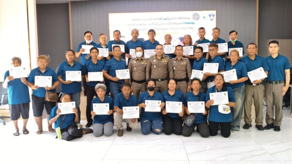 ภายหลังเสร็จสิ้นการอบรม เจ้าหน้าที่ได้มอบเกียรติบัตรแก่ผู้เข้าร่วมโครงการ เพื่อเป็นขวัญกำลังใจและสร้างแรงจูงใจในการมีส่วนร่วมดูแลความปลอดภัยของชุมชน