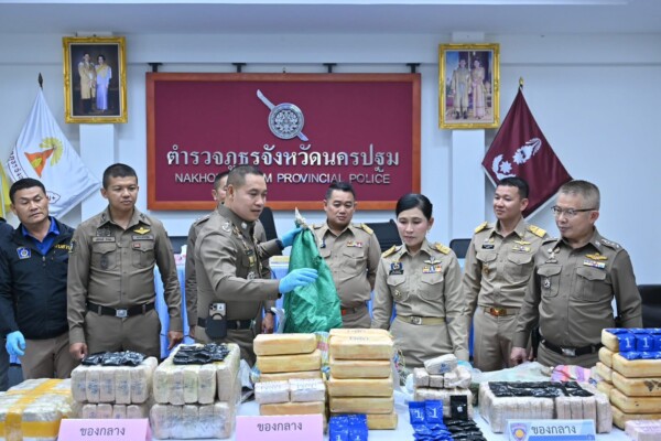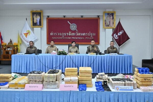 วันที่ 30 มีนาคม 2569 ที่ห้องประชุม ตำรวจภูธรจังหวัดนครปฐม นางสาวอโรชา นันทมนตรี ผู้ว่าราชการจังหวัดนครปฐม พร้อมด้วย พลตำรวจตรี พิทักษ์ อุปพงษ์ ผู้บังคับการตำรวจภูธรจังหวัดนครปฐม ปลัดจังหวัดนครปฐม และรองผู้บังคับการตำรวจภูธรจังหวัดนครปฐม ร่วมแถลงผลการจับกุมผู้ต้องหาในคดียาเสพติด ภายใต้ปฏิบัติการ พิทักษ์นครปฐม ทลายเครือข่ายยาเสพติด โดยเมื่อวันที่ 27 มีนาคม 2569 เจ้าหน้าที่ตำรวจชุดสืบสวน สถานีตำรวจภูธรบางเลน ร่วมกับ ฝ่ายปกครองอำเภอบางเลน ลงพื้นที่ตรวจค้นและจับกุมผู้ต้องหาคดียาเสพติด ในพื้นที่ตำบลลำพญา พร้อมของกลางยาบ้า 882,102 เม็ด, เคตามีน 6.43 กรัม, โทรศัพท์มือถือ และรถยนต์ อีกทั้งยึดทรัพย์สินไว้เพื่อตรวจสอบ ได้แก่ รถยนต์กระบะ 1 คัน, บัตร ATM และคันเบ็ด 17 คัน รวมมูลค่าทรัพย์สิน 3,300,000 บาท และออกหมายจับผู้ร่วมขบวนการจำหน่ายยาเสพติดเพิ่มเติมอีก 1 ราย
