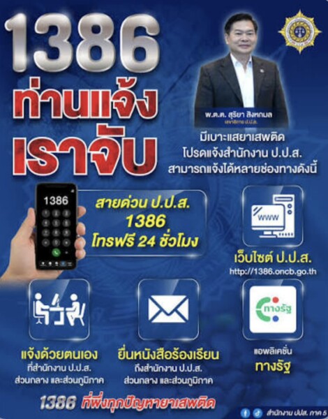 สายด่วนปปส. 1386 ไม่ได้มีไว้เพียงแค่รับแจ้งเบาะแสยาเสพติดเท่านั้น โดยในปัจจุบันคณะกรรมการป้องกันและปราบปรามยาเสพติดยกระดับสายด่วน 1386 เป็นศูนย์กลางรับเรื่องร้องเรียนทุกปัญหายาเสพติดของประชาชนรวมถึงให้คำปรึกษาตลอดทุกกระบวนการทั้งในด้านการรับแจ้งเบาะแส ด้านการประสานงานกับหน่วยงานราชการในท้องที่ และการให้คำปรึกษาและแนะนำวิธีปฏิบัติทั้งในด้านการป้องปรามไปจนถึงการให้กำลังใจลด ละ เลิก และร่วมสร้างสังคมที่ปลอดภัยไปด้วยกัน