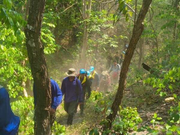 วันที่ 2 เมษายน 2569 เวลา 13.30 น. นายวสันต์ สุนจิรัตน์ ประธานสภาลมหายใจกาญจนบุรี พร้อมด้วยกำลังจากกรมทหารราบที่ 9 และหน่วยขึ้นตรง (ร.9 พัน.1) นำโดยนายพลายงาม ชัชวาล หัวหน้ากองโรงไฟฟ้าเขื่อนท่าทุ่งนา ร่วมกับทีมปกครองตำบลช่องสะเดา สถานีควบคุมไฟป่าสลักพระเอราวัณ เครือข่ายอาสาสมัครอุทยานแห่งชาติสัตว์ป่าและพันธุ์พืช อส.อส.ตำบลช่องสะเดา รวมถึงพนักงานการไฟฟ้าฝ่ายผลิตแห่งประเทศไทย เขื่อนท่าทุ่งนา