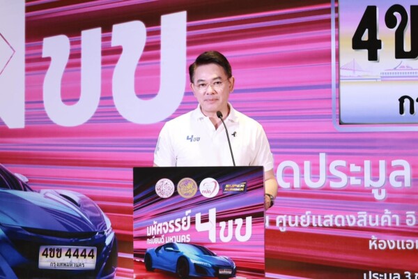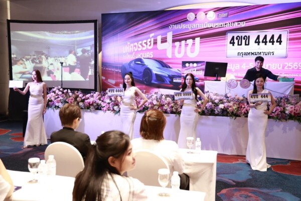 วันนี้ (4 เมษายน 2569) ณ อิมแพ็ค เอ็กซิบิชั่น เซ็นเตอร์ เมืองทองธานี ห้อง Amber 1 (บริเวณ Lobby Hall 7) นายสรพงศ์ ไพฑูรย์พงษ์ อธิบดีกรมการขนส่งทางบก เป็นประธานเปิดงานประมูลหมายเลขทะเบียนรถเลขสวย “หมวดอักษรพิเศษ 4ขข” กรุงเทพมหานคร โดยผลการประมูลวันแรก หมายเลขทะเบียนที่มียอดการประมูลสูงสุด คือ “ 4ขข 4444 ” ซึ่งประมูลได้ในราคา 3,343,333 บาท ทั้งนี้ เชิญชวนประชาชนผู้สนใจยังสามารถร่วมประมูลได้ในวันที่ 5 เมษายน 2569 โดยสามารถลงทะเบียนได้ทางเว็บไซต์ www.tabienrod.com