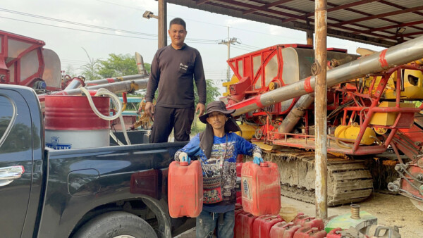 ขณะที่เจ้าของรถเกี่ยวข้าว อ.สามชุก บอกว่าแต่ละวันต้องขับรถไปตะเวนเข้าคิวต่อแถวซื้อน้ำมันมาใส่รถเกี่ยวข้าวแบบวันต่อวัน ปกติรถเกี่ยวข้าว 1 คัน จะเกี่ยวข้าวได้วันละ 30-40 ไร่ ใช้น้ำมันวันละ 150-200 ลิตร แต่ปัจจุบันบางวันซื้อน้ำมันมาได้แค่ 40-50 ลิตรบ้าง ก็จะเกี่ยวข้าวได้วันละประมาณไม่เกิน 10 ไร่ เพราะไม่มีน้ำมัน บางวันตะเวนหาซื้อน้ำมันมาได้มากก็จะเกี่ยวข้าวได้มาก แต่ละวันต้องขึ้นอยู่ที่จำนวนน้ำมันที่หาซื้อมาได้ ถ้าข้าวได้กำหนดเก็บเกี่ยวแล้ว แต่รถเกี่ยวข้าวไม่มีน้ำมันไปเกี่ยวให้ชาวนา ข้าวก็จะเสียหาย ขายไม่ได้ราคาอีก