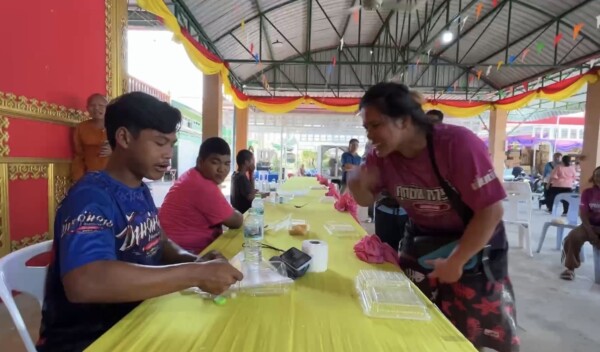 อิ่มจนจุกแข่งขันกินข้าวเหนียวมะม่วงชิงเงินรางวัล 1000 บาท ส่งเสริมการท่องเที่ยวท้องถิ่นพร้อมล้วงไหการกุศลในงานประจำปีที่วัดบางกระพ้อ ชูของดี มะม่วงน้ำดอกไม้ อ.บางคล้า จ.ฉะเชิงเทรา