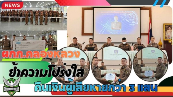 ปทุมธานี ผกก.คลองหลวงประชุมตำรวจ ย้ำความโปร่งใส พร้อมคืนเงินผู้เสียหายกว่า 3 แสนบาท