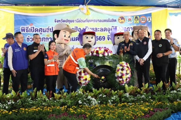 วันนี้ (9 เม.ย. 69) เวลา 15.30 น. ที่ ตลาดกินซ่า ท่ารถตู้ต่างจังหวัดขาออก (ตรงข้ามศูนย์การค้า ฟิวเจอร์พาร์ค รังสิต) ตำบลประชาธิปัตย์ อำเภอธัญบุรี จังหวัดปทุมธานี นายเอกวิทย์ มีเพียร ผู้ว่าราชการจังหวัดปทุมธานี เป็นประธานเปิดศูนย์ปฏิบัติการป้องกันและลดอุบัติเหตุทางถนนช่วงเทศกาลสงกรานต์ พ.ศ.2569 จังหวัดปทุมธานี โดยมีพระครูภาวนาสุธรรมวิเทศ ผู้ช่วยเจ้าอาวาสวัดพระธรรมกาย พลอากาศโท ประสิทธิ์ ดำรงค์ปรีชา เจ้ากรมกิจการพลเรือนทหารอากาศ พ.อ.กิตติศักดิ์ วัฒนเดช รอง ผอ.รมน.จังหวัดปทุมธานี ว่าที่ร้อยตรี ธีระพล โชคนำชัย ปลัดจังหวัดปทุมธานี นายอำเภอ รตอ.ดร.ตรีลุพธ์ ธูปกระจ่าง นายกเทศมนตรีนครรังสิต นางสาวสุพีพร โมรา หัวหน้าสำนักงานป้องกันและบรรเทาสาธารณภัยจังหวัดปทุมธานี สำนักงานคณะกรรมการป้องกันและปราบปรามยาเสพติด ภาค 1 (ปปส.ภาค 1) พร้อมด้วยคณะกรรมการศูนย์ปฏิบัติการป้องกันและลดอุบัติเหตุทางถนนช่วงเทศกาลสงกรานต์ พ.ศ.2569 จังหวัดปทุมธานี อำเภอทุกแห่ง สถานีตำรวจภูธร ทุกแห่ง ผู้บริหารเทศบาลนครรังสิต หน่วยงานภาคเอกชน มูลนิธิ จิตอาสา อาสาสมัครป้องกันภัยฝ่ายพลเรือน เข้าร่วมพิธีเปิด