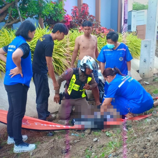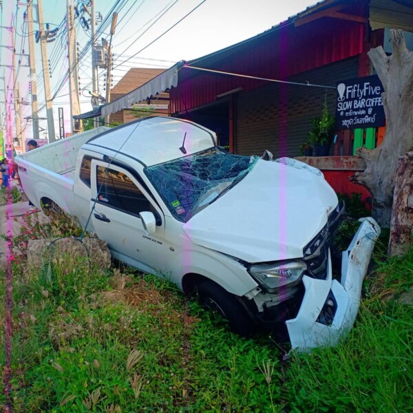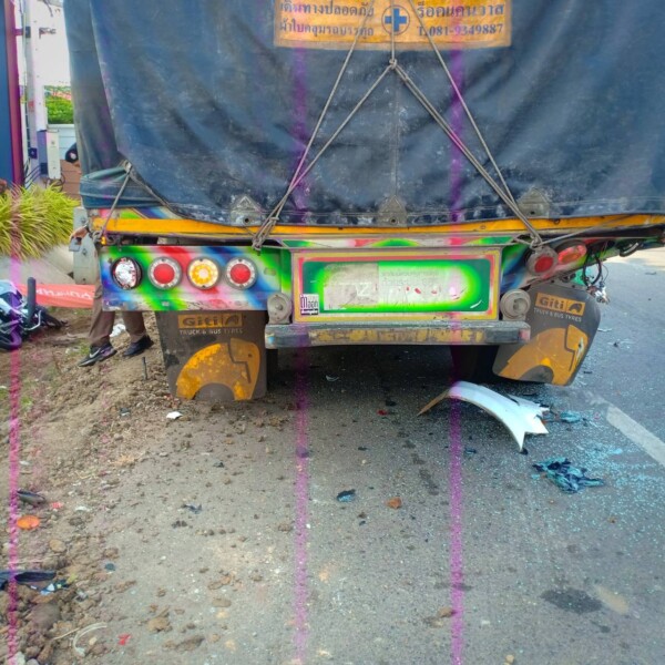 สลดดับสงกรานต์ สาวใหญ่ขี่ จยย.ถูกกระบะชนกระเด็นไปชนรถบรรทุกจอดข้างทาง สาหัส ด.ต. หัวหน้าตำรวจสายตรวจจราจร สภ.แปลงยาวเร่งช่วย ปั้มหัวใจไม่เป็นผล