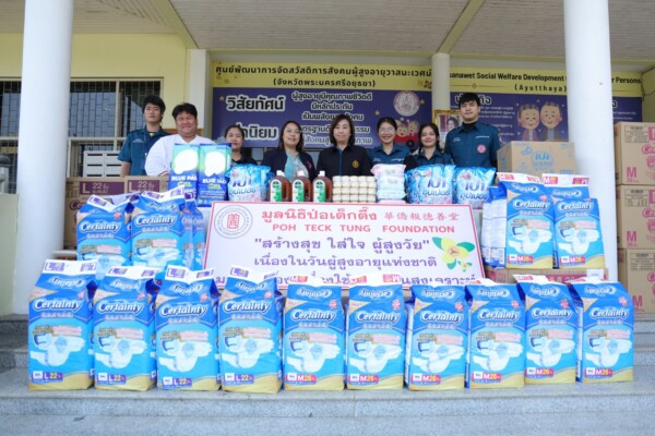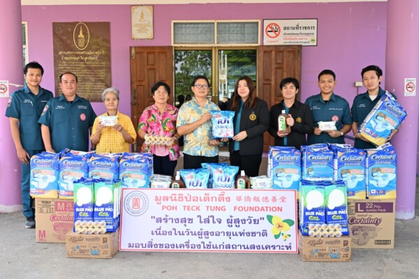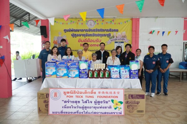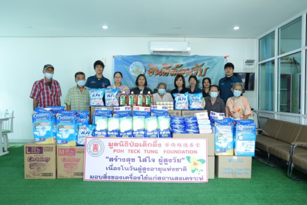 พร้อมกันนี้ มูลนิธิป่อเต็กตึ๊ง ได้จัดโครงการ “ป่อเต็กตึ๊ง สร้างสุข ใส่ใจ ผู้สูงวัย” ลงพื้นที่มอบสิ่งของเครื่องใช้จำเป็น อาทิ ผ้าอ้อมสำเร็จรูป น้ำยาฆ่าเชื้อโรค แผ่นรองซับ ผงซักฟอก ทิชชูเปียก ปิโตรเลียมเจลลี่ (สำหรับผู้ป่วยติดเตียง) ให้แก่ผู้สูงวัย ณ ศูนย์พัฒนาการจัดสวัสดิการสังคมผู้สูงอายุปทุมธานี สถานคุ้มครองคนไร้ที่พึ่งชายธัญบุรี และสถานคุ้มครองคนไร้ที่พึ่งหญิงธัญบุรี จ.ปทุมธานี สถานสงเคราะห์หญิงชราไร้ที่พึ่ง บ้านสุทธาวาส เฉลิมพระเกียรติฯ จ.นครนายก ศูนย์สงเคราะห์ผู้สูงอายุ คามิลเลียน จ.ปราจีนบุรี สถานสงเคราะห์คนชราเฉลิมราชกุมารี (หลวงพ่อลำใยอุปถัมภ์) จ.กาญจนบุรี สถานสงเคราะห์คนชรานครปฐม และสถานสงเคราะห์คนชราเฉลิมราชกุมารี (หลวงพ่อเปิ่นอุปถัมภ์) จ.นครปฐม สถานสงเคราะห์คนชราบ้านเขาบ่อแก้ว จ.นครสวรรค์ และ ศูนย์พัฒนาการจัดสวัสดิการสังคมผู้สูงอายุวาสนะเวศม์ จ.พระนครศรีอยุธยา รวม 10 แห่ง คิดเป็นมูลค่าทั้งสิ้น 634,580 บาท (หกแสนสามหมื่นสี่พันห้าร้อยแปดสิบบาทถ้วน) เพื่อเป็นขวัญและกำลังใจแก่ผู้สูงวัย เนื่องในวันผู้สูงอายุแห่งชาติ ประจำปี 2569