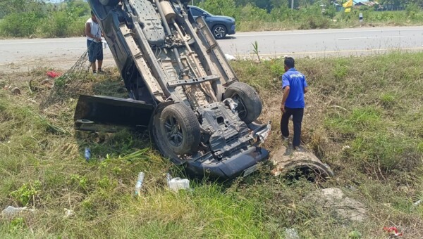 เมื่อวันที่ 3 เม.ย.69 เวลา12.40 น. ผู้สื่อข่าวรายงานว่า ได้เกิดอุบัติเหตุรถกระบะเสียหลักพุ่งชนเสาไฟฟ้าพลิกคว่ำล้อชี้ฟ้าเจ็บสาหัส 2 ราย บนถนนสาย อ.แก้งคร้อ-ภูเขียว บริเวณบ้านหนองตะไก้ ตำบลโอโล อำเภอภูเขียว จังหวัดชัยภูมิ ฝั่งขาเข้า อ.ภูเขียว ทราบชื่อคนขับคือ นาย ณรงศักดิ์ เลขตะโก อายุ 59 ปีบ้านเลขที่ 356 หมู่ 13 ต. หัวนา อ.เมือง จ.หนองบัวลำภู จากการตรวจสอบในที่เกิดเหตุ พบรถกระบะ toyota cab สีดำทะเบียน ผอ 195 ขอนแก่น ติดคอกเหล็กบรรทุกสิ่งของมาในรถบางส่วนและรถเกิดพลิกคว่ำหงายท้องล้อชี้ฟ้าสภาพด้านหน้าพังยับเยินและพบว่ามีผลไม้เช่น มะพร้าว กล้ามะพร้าว และฝรั่ง ที่ใส่มาในรถกระเด็นตกในคลองในจุดเกิดเหตุ ใกล้กันยังพบเสาไฟฟ้าหักโค่นและเสาตอหม้อไฟฟ้าหลุดจากหลุมล้มวางอยู่ในคลองอีกด้วย