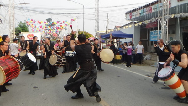 โดยตั้งแต่เวลา 16.00 น.มีขบวนแห่รถกลองชนิดต่างๆ จากท่ารถ บขส.ในตลาดป่าโมก เคลื่อนผ่านตลาดป่าโมก มายังโดมหมู่บ้านทำกลอง ระยะทาง 5 กิโลเมตร ท่ามกลางประชาชนที่ยืนดูทั้ง 2 ข้างทาง