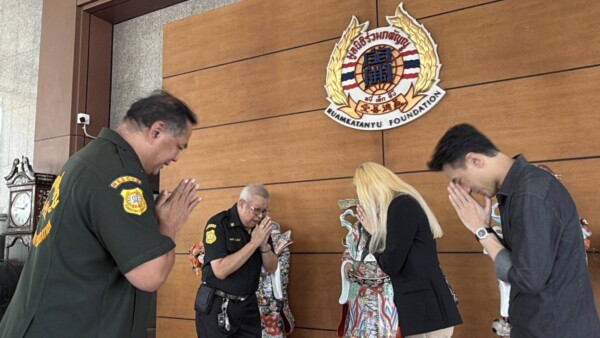 นาย สมศักดิ์ ปาลวัฒน์ ผู้จัดการ เป็นตัวแทน ท่านประธาน มูลนิธิร่วมกตัญญู พร้อม นาย มนตรี ขาวสะอาด หัวหน้าฝ่ายบุคคล นาย ฐิติกร เศวตนันท์ รองผู้จัดการ นาย ศุภสิน เรืองสว่าง หัวหน้ากู้ชีพ