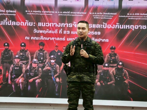 ร่วมเป็นวิทยากรบรรยายเพื่อให้ความรู้ในโครงการ “แนวทางการจัดการและป้องกันเหตุอาชญากรรม” ณ คณะศึกษาศาสตร์ มหาวิทยาลัยศิลปากร โดยมีวัตถุประสงค์เพื่อเสริมสร้างองค์ความรู้ ทักษะ และความตระหนักรู้ให้แก่บุคลากรและนักศึกษา ในการเฝ้าระวัง ป้องกัน และประเมินสถานการณ์ที่อาจก่อให้เกิดเหตุอาชญากรรม รวมถึงการรับมือกับสถานการณ์ความรุนแรงในรูปแบบต่าง ๆ เช่น เหตุกราดยิง (Active Shooter) ในการพัฒนาศักยภาพด้านการสังเกต วิเคราะห์ และการตอบสนองต่อสถานการณ์ฉุกเฉินได้อย่างถูกต้อง รวดเร็ว และเหมาะสม อันจะนำไปสู่การสร้างสภาพแวดล้อมที่ปลอดภัยและเข้มแข็งภายในสถานศึกษา