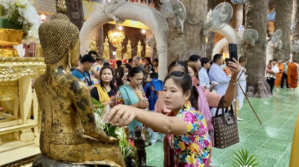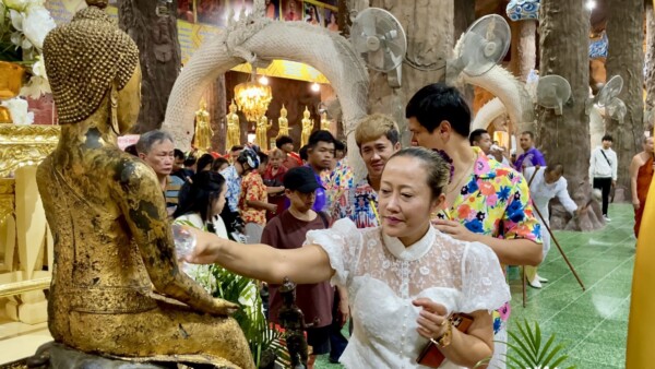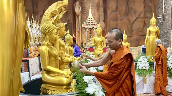 ในวันสงกรานต์ สิ่งหนึ่งที่คนไทยนิยมทำกันนอกจากการเล่นสาดน้ำ หรือทำบุญไหว้พระ รดน้ำดำหัวญาติผู้ใหญ่แล้ว นั่นคือ “การสรงน้ำพระ” เพื่อความเป็นสิริมงคล ซึ่งการสรงน้ำพระ ถ้าตั้งใจสรงน้ำพระ มีจิตศรัทธาให้พระวรกายของพระพุทธเจ้าสะอาดปราศจากมลทินแล้ว ผลที่เห็นได้ทันที คือทำให้เราเป็นผู้มีความสดชื่น เย็นกายเย็นใจ ไม่มีเรื่องขุ่นข้องหมองใจ สุขกายสบายใจหรืออิ่มเอมใจ สำหรับวัดมณีวงศ์ได้เปิดให้นักท่องเที่ยวได้สรงน้ำพระตลอดในช่วงวันหยุดยาวนี้เท่านั้น