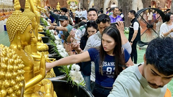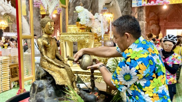 วันที่ 13 เมษายน 2569 ที่บริเวณภายในถ้ำพญานาค วัดมณีวงศ์ ต.ดงละคร อ.เมือง จ.นครนายก พระครูปิยรัตนานุกูล (หลวงพี่ต่อ) เจ้าอาวาสวัดมณีวงศ์ จัดพิธีสืบสานประเพณีสรงน้ำพระ เนื่องในเทศกาลวันสงกรานต์ โดยได้อัญเชิญพระพุทธปางป่าเลไลย์ พระประจำวัดมณีวงศ์ที่มีอายุกว่า 400 ปี นอกจากนั้นยังได้นำพระพุทธเจ้า 28 พระองค์ มาให้ประชาชนในพื้นที่และนักท่องเที่ยวได้สรงน้ำเพื่อความเป็นสิริมงคล โดยมี นายกองโท สมศักดิ์ แย้มพันธ์นุ้ย นายอำเภอเมืองนครนายก เป็นประธานในพิธี พร้อมด้วย พล.ต.ต.ประเสริฐ วิจิตรทัศนา ผู้บังคับการตำรวจภูธรจังหวัดนครนายก และนักท่องเที่ยวที่มาเที่ยวชมถ้ำพญานาคแห่งนี้ ให้ความสนใจร่วมกันสรงน้ำพระเป็นจำนวนมาก
