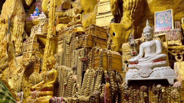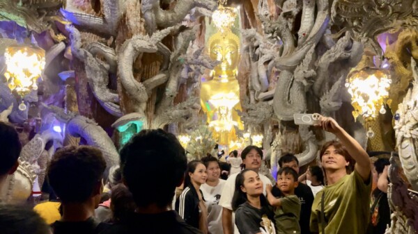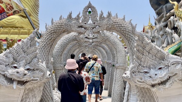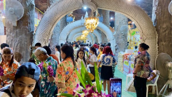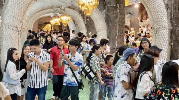 วันที่ 14 เมษายน 2569 ผู้สื่อข่าวรายงานบรรยากาศที่บริเวณถ้ำพญานาค วัดมณีวงศ์ ต.ดงละคร อ.เมือง จ.นครนายก ได้มีนักท่องเที่ยวจากทั่วสารทิศทั้งชาวไทยและชาวเมียนมา ต่างพาครอบครัวลูกหลานเดินทางมายังวัดมณีวงศ์ เที่ยวชมความงดงามปฏิมากรรมภายในถ้ำพญานาคอันเลื่องลือ ทำบุญปิดทอง ไหว้พระขอพร สรงน้ำพระพุทธปางป่าเลไลย์ที่มีอายุกว่า 400 ปี และกราบไหว้สิ่งศักดิ์สิทธิ์ที่ประดิษฐานภายในวัดมณีวงศ์ ในวันครอบครัวช่วงวันหยุดยาวในเทศกาลวันสงกรานต์กันอย่างเนืองแน่น นอกจากจะได้ทำบุญแล้วยังได้ตื่นตา ตื่นใจ กับรูปปั้นพญานาคที่มีความงดงามวิจิตรศิลป์ภายในถ้ำพญานาค ให้นักท่องเที่ยวได้บันทึกภาพเก็บไว้เป็นที่ระลึก และเป็นความทรงจำที่ดีที่ได้มาวัดมณีวงศ์แห่งนี้