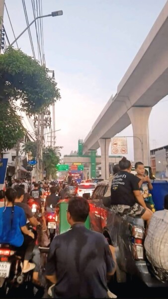 ถนนปู่เจ้าสมิงพราย: การจราจรเคลื่อนตัวได้ช้าจนเกือบหยุดนิ่งตลอดสาย ตั้งแต่ช่วงต้นถนนจนถึงจุดตัดถนนสุขุมวิทบริเวณแยกปู่เจ้าสมิงพราย