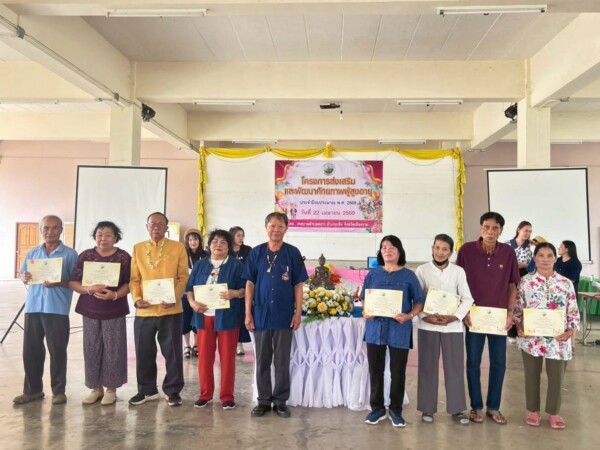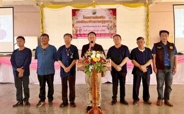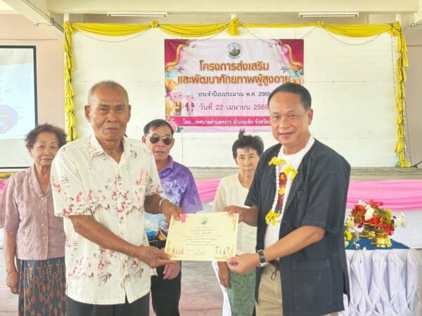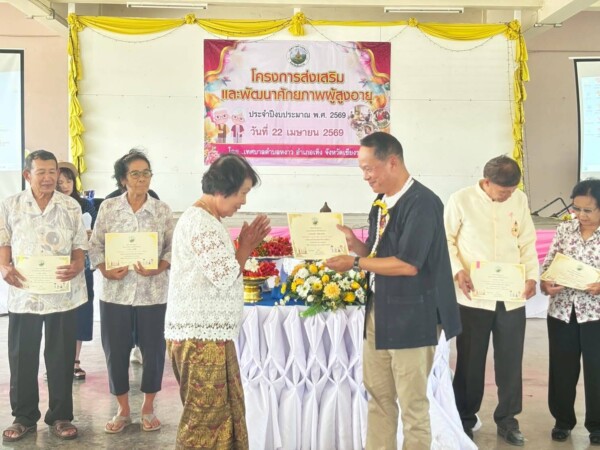 วันที่ 22 เมษายน 2569 ที่ผ่านมา ว่าที่ พ.ต.ต.วรเมธ ธรรมจันตา นายกเทศมนตรีตำบลหงาว อำเภอเทิง จังหวัดเชียงราย เป็นประธานเปิดโครงการส่งเสริมและพัฒนาศักยภาพผู้สูงอายุประจำปีงบประมาณ พ.ศ. 2569 ณ อาคารศูนย์บริการท่องเที่ยวกลุ่มจังหวัดภาคเหนือ ตอนบน 2 จว.เชียงราย เพื่อส่งเสริมให้ความรู้เรื่องการส่งเสริมสุขภาพตามหลัก 5 อ. (อาหาร ออกกำลังกาย อารมณ์ เอนกายพักผ่อน อนามัย/อดิเรก) ให้ผู้สูงอายุมีความรู้เกี่ยวกับการพัฒนาสุขภาพกาย สุขภาพจิต และสามารถดูแลสุขภาพของตนเองเบื้องต้นได้ เพื่อส่งเสริมให้ผู้สูงอายุมีการวางแผนการดำเนินชีวิต มีความรู้ความเข้าใจ และมีการเตรียมความพร้อมเข้าสู่สังคมผู้สูงวัยเต็มรูปแบบ เพื่อส่งเสริมความกตัญญู รู้คุณต่อผู้สูงอายุ การสร้างขวัญกำลังใจ และสร้างความรู้สึกมีคุณค่าให้ผู้สูงอายุ ได้ทำกิจกรรมร่วมกัน ลดความเหงาและภาวะซึมเศร้า โดยมีวิทยากรจากโรงพยาบาลเทิงมาอบรมให้ความรู้เรื่อง การกินอาหารตามวัยใส่ใจสุขภาพ การบริโภคโดยนำสมุนไพรใกล้ตัวมาประกอบอาหาร และใช้เป็นยารักษาโรค จากนั้นช่วงบ่ายเป็นการมอบเกียรติบัตรสำหรับ “ผู้สูงอายุต้นแบบ สุขภาพดี ชีวีมีสุข” ดีเด่น ประจำปี พ.ศ. 2569 และมอบเกียรติบัตรสำหรับผู้เข้ารับการฝึกอบรม พิธีสรงน้ำพระ กิจกรรมกตัญญูกตเวที เคารพรักผู้สูงอายุ โดย ว่าที่ พ.ต.ต.วรเมธ ธรรมจันตา นายกเทศมนตรีตำบลหงาว ได้นำผู้บริหารเจ้าหน้าที่ เทศบาลฯ ร่วมพิธีรดน้ำดำหัวผู้สูงอายุตามประเพณี