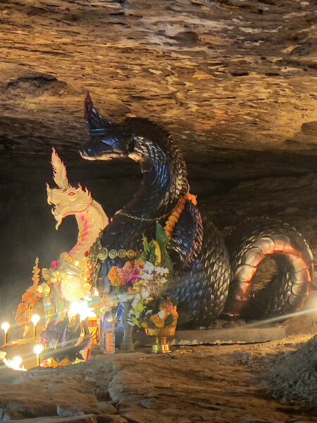 ต่อมา จึงได้มีพิธีกรรมที่สำคัญทางศาสนา เพื่อลูกหลานได้ศึกษาเรียนรู้ต่อไป นั่นก็คือ “พิธีกรรมนำพระเข้าถ้ำ” ซึ่งเริ่มปีนี้เป็นปีแรก ท่านใดอยากสุขสมหวังในทุกๆเรื่อง เพียงแค่นำพระพุทธรูปมาถวายเข้าถ้ำ ท่านจะได้สำเร็จทุกสิ่งอย่าง ทันตา ทันใจ ในทันที.