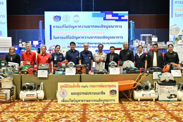 นายสุรพงษ์ เตชะหรูวิจิตร กรรมการและรองเลขาธิการ กล่าวว่า โครงการแก้ไขปัญหาความยากจนเชิงบูรณาการ มูลนิธิป่อเต็กตึ๊ง ได้สนับสนุนอุปกรณ์ประกอบอาชีพ ช่วยเหลือครัวเรือนยากจน ตามบันทึกข้อตกลงความร่วมมือแก้ไขปัญหาความยากจน ระหว่างกรมการพัฒนาชุมชนและมูลนิธิป่อเต็กตึ๊ง ซึ่งมูลนิธิฯ ได้จัดงบประมาณดำเนินการเพื่อจัดหาวัสดุอุปกรณ์การประกอบอาชีพมอบให้แก่ครัวเรือนยากจน ให้สามารถประกอบอาชีพเลี้ยงตนเองและครอบครัว ซึ่งได้ดำเนินการไปแล้ว 3 ระยะ โดย ระยะที่ 1 ดำเนินการในพื้นที่ภาคกลาง จำนวน 17 จังหวัด รวม 98 ครัวเรือน ระยะที่ 2 ได้ดำเนินการในพื้นที่ภาคเหนือ จำนวน 17 จังหวัด รวม 230 ครัวเรือน ระยะที่ 3 ได้ดำเนินการในพื้นที่ทางภาคตะวันออกเฉียงเหนือ จำนวน 20 จังหวัด รวม 485 ครัวเรือน นอกจากนี้ยังได้มอบอุปกรณ์ประกอบอาชีพให้กับครัวเรือนยากจนผู้ประสบอุทกภัย ประจำปี พ.ศ.2567 ในพื้นที่จังหวัดเชียงใหม่ และ จังหวัดเชียงราย อีกจำนวน 57 ครัวเรือน รวมจำนวนครัวเรือนยากจนที่มูลนิธิป่อเต็กตึ๊งได้สร้างอาชีพ สร้างชีวิต ด้วยการมอบอุปกรณ์ประกอบอาชีพแล้วทั้งสิ้น 870 ครัวเรือน คิดเป็นมูลค่ากว่า 17 ล้านบาท และขณะนี้ได้พิจารณาดำเนินการระยะที่ 4 ในพื้นที่ภาคใต้ รวม 14 จังหวัด ได้แก่ ชุมพร สุราษฎร์ธานี ระนอง นครศรีธรรมราช พังงา พัทลุง สงขลา ตรัง สตูล กระบี่ ภูเก็ต ปัตตานี ยะลา และนราธิวาส