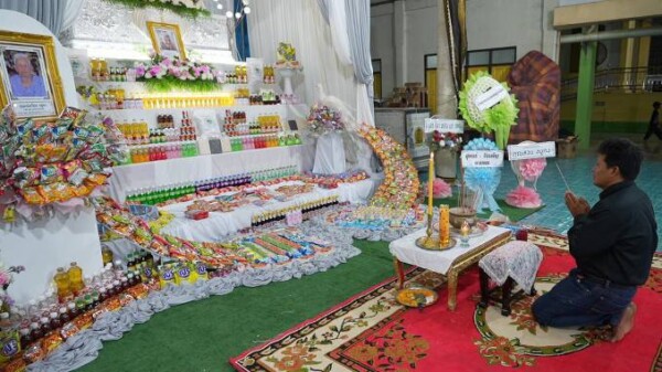 ปราจีนบุรี ไอเดียจุดเจ๋งงานศพใช้ของเครื่องอุปโภคบริโภคแต่งแทนดอกไม้