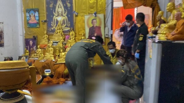 ที่เกิดเหตุเป็นกุฎิพระ สูง 3 ชั้นแบ่งเป็นชั้นละ 5 ห้อง ภายในห้อง ชั้น 2 อยู่ติดกับบรรได บนพื้น พบศพพระภิกษุ สุนันท์ ( ขอสงวนนามสกุล ) อายุ 63 ปี สภาพนอนหงายนุ่งจีวรพระ ร่างอืดบวมใบหน้าและเนื้อตัวเขียวช้ำเป็นจ้ำ มีหลอดดูดน้ำเสียบคาปาก มีผ้าขนหนูสีเหลืองมัดคอ นอนเสียชีวิตอยู่บนจีวรพระ คาดเสียชีวิตมาแล้วไม่ต่ำกว่า 2 วัน จากการตรวจสอบห้องพักพบประตูล็อคจากด้านนอก โดยหลังเกิดเหตุตำรวจจึงไปตามลูกชายของพระสุนันท์ฯ มาสอบถาม แต่พูดจาไม่รู้เรื่องคล้ายคนเมายา จึงควบตุมตัวไปสอบปากคำที่โรงพัก