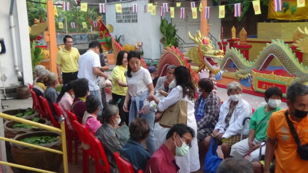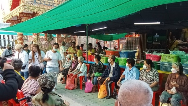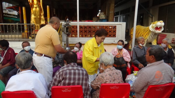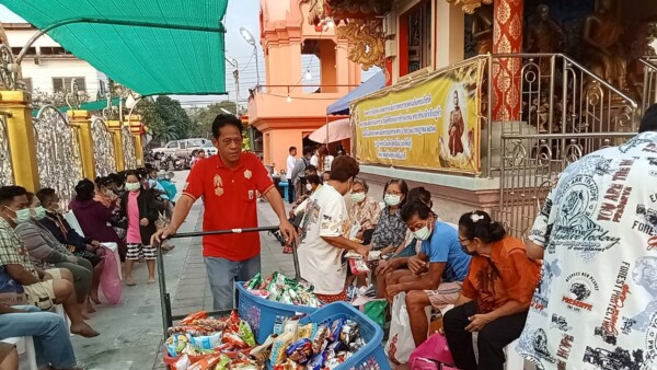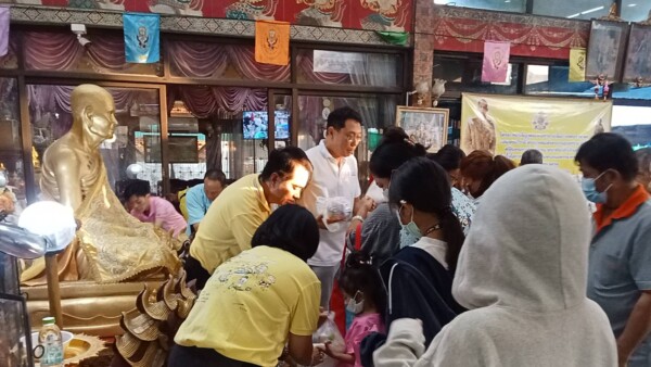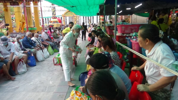 นายจักรพันธ์ ทองแก้ว อายุ 37 ปี ผู้ร่วมทำบุญ กล่าวว่า วันนี้มาแจกของเนื่องจากพระยุทธท่านแจกทานบารมีทุกวันอาทิตย์อยู่แล้วซึ่งเป็นประจำทุกเดือน เนื่องจากในปีนี้เป็นปีพระราชกุศลของพระบาทสมเด็จพระเจ้าอยู่หัวรัชกาลที่ 10 ก็เลยว่าบุญในวันนี้ก็เหมือนเป็นการถวายพระราชกุศลให้กับพระบาทสมเด็จพระเจ้าอยู่หัวของเรา บุญในวันนี้เป็นบุญที่ประชาชนทุกคนที่พอที่จะมีกำลังช่วยเหลือชาวบ้านในชุมชนบางมดช่วยเหลือกันแล้วก็ทำบุญในทุกๆเดือน เพื่อที่จะสร้างบุญถวายหลวงปู่หลวงพ่อโอภาสี และก็ถวายให้กับพระบาทสมเด็จพระเจ้าอยู่หัวทำให้ชาวบ้านที่ลำบากก็คือว่าช่วยชาวบ้านแถวๆนี้คนที่ไม่มีก็คือว่าได้เป็นกำลังใจในการดำรงชีวิตในบุญกุศลที่เราทำในวันนี้เหมือนเราถวายหลวงปู่โอภาสีเหมือนเป็นกองบุญในการสะสมบุญ เป็นบุญบารมีที่ทุกๆท่านทุกๆคนที่จะร่วมกันทำบุญในวันนี้ ก็จะเป็นอานิสงส์ก็จะเป็นบุญมหาบุญบารมีก็ขอถวายให้กับพระบาทสมเด็จพระเจ้าอยู่หัว ซึ่งถ้าเพื่อนๆท่านใดสนใจที่จะมาร่วมทำบุญที่วัดหลวงพ่อโอภาสี