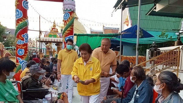 นางรื่นฤดี ภูรีศรี อายุ 54 ปี ผู้ร่วมทำบุญ กล่าวว่า ก็แบบว่าสนับสนุนกิจกรรมของหลวงพี่ยุทธนา มะลิพันธุ์ ซึ่งเป็นหลานแท้ๆของหลวงปู่โอภาสี ท่านมีกิจกรรมท่านจะแจกทานคล้ายๆกับหลวงพ่อโอภาสี ตามประวัติท่านจะมีแจกตั้งแต่ช่วงโควิดเป็นต้นมาอาทิตย์เเรกของเดือนจะช่วยเหลือคนที่เขายากจนอะไรอย่างนี้แจกทานสม่ำเสมอตั้งแต่โควิดจนมาถึงปัจจุบันอาทิตย์แรกของเดือน แต่ละครั้งที่มีการแจกของประชาชนก็จะมากันเยอะ เขาแจกมานานแล้วตั้งแต่โควิดจนมาถึงปัจจุบันนี้ก็นับครั้งไม่ถ้วนแล้วการที่ตนมาร่วมแจกตนก็รู้สึกประทับใจที่ได้ช่วยเหลือเขายากไร้ ต่อไปตนก็จะมาร่วมทุกครั้ง ถ้าท่านใดสนใจอยากจะมาร่วมทำบุญก็มาถวายที่ตรงนี้ก็ได้ แล้วถึงเวลาแจกทาน หลวงพี่ยุทธนาก็จะนำเอาออกมาแจก แล้วก็ด้านข้างกุฏิของท่าน ตรงบริเวณข้างกำแพงก็จะมีก๊อกน้ำ ประทับใจตรงนี้ว่าชาวบ้านที่ไม่มีเครื่องกรองน้ำ ก็จะมาเปิดแล้วนำไปดื่มได้ ส่วนพวกสิ่งของที่ตนนำมาทำบุญส่วนมากก็จะเป็นข้าวสารอาหารแห้ง หรือว่าท่านใดต้องการนำวัตถุดิบมาก็ได้ แล้วแต่คนไหนจะมาร่วมบุญแล้วแต่สะดวก และท่านก็จะนำไปเก็บไว้พอถึงเวลาแจกก็จะนำมาแจกซึ่งเป็นอาทิตย์แรกของต้นเดือนตั้งแต่โควิดเป็นต้นมา