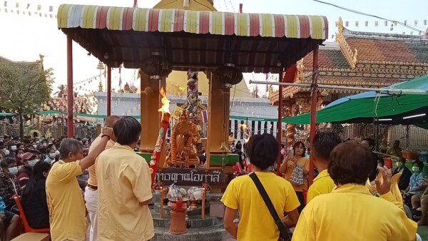 อายุ 53 ปี ผู้มาร่วมบุญ กล่าวว่า ตนมีความรู้สึกดีใจที่ประเพณีแบบนี้ยังมีอยู่อีก ที่ประเทศของเรา วัดเก่าแก่หลวงพ่อโอภาสี วันนี้เป็นวันที่ดีมาก วันนี้เป็นครั้งแรกที่มาร่วมบุญ ได้มีการแจกทานแก่ประชาชน ก็อยากให้มีต่อๆไป