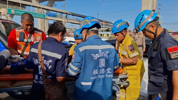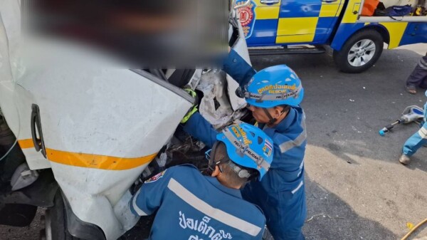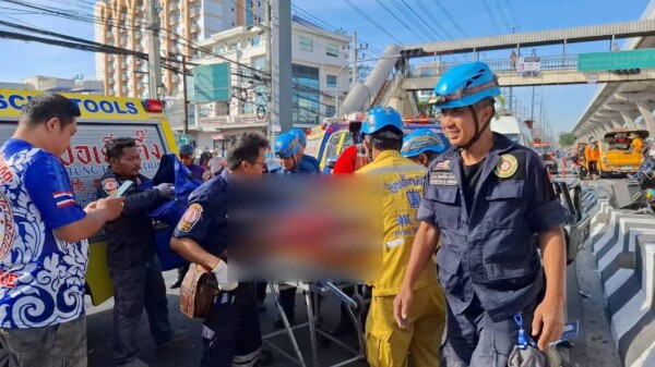 เมื่อเจ้าหน้าที่ตำรวจพร้อมอาสาสมัครมาถึงที่เกิดเหตุพบ เหตุเกิดบริเวณปากซอยพระรามที่ 2 ซอย 43 ถนน พระรามที่2 แขวง บางมด เขต จอมทอง กรุงเทพมหานคร ที่เกิดเหตุพบรถบรรทุกหกล้อ ตู้ทึบยี่ห้อ อีซูซุ สีขาว ทะเบียน 69 – 2617 กรุงเทพมหานคร ( ป้ายเหลือง ) จอดนิ่งสนิทเบียดกับขอบปูนกั้นขอบทางอยู่ในสภาพด้านหน้าหัวรถดังกล่าวพังยับเยิน ตรวจสอบด้านในหัวรถบริเวณที่นั่งคนขับพบ นาย ณัฐพล ( ขอสงวนนามสกุล ) อายุ 32 ปี เป็นผู้ขับขี่รถบรรทุกคันดังกล่าว ขาทั้งสองข้างติดอยู่บริเวณคอนโซลหน้ารถร้องโอดโอยด้วยความเจ็บปวดรอการช่วยเหลือจากอาสาสมัครกู้ภัยอยู่มีอาการถามตอบรู้เรื่องมีสติดี อาสาสมัครจึงรีบเร่งใช้อุปกรณ์เครื่องตัดถ่างนำร่างผู้ได้รับบาดเจ็บออกมาจากหัวรถทันที ใช้เวลาประมาณ 20 นาที จึงสามารถนำร่างชายคนดังกล่าวออกมาได้แล้วให้การปฐมพยาบาลเบื้องต้นก่อนที่จะนำส่งไปรักษาต่อที่โรงพยาบาลบางประกอก 9 ทันทีอย่างเร่งด่วน