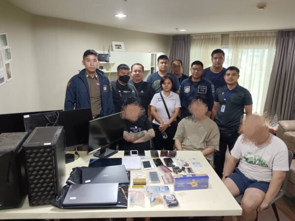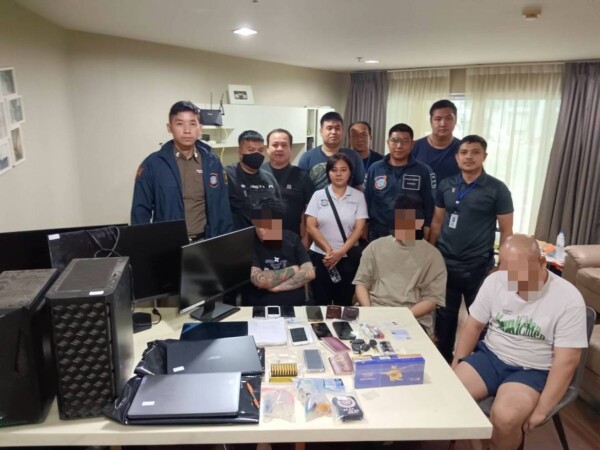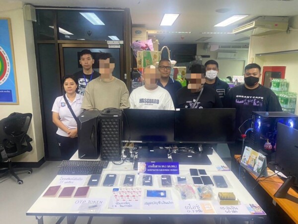 วันนี้ (4 ก.พ.) พล.ต.ท.ศักดิ์ศิรา เผือกอ่ำ ผบช.ทท. พร้อมด้วย พล.ต.ต.นรเศรษฐ์ สุวรรณนิกขะ ผบก.ทท.1 พ.ต.อ.ปิยรัช สุภารัตน์ รอง ผบก.ทท.1 พ.ต.อ.กรฤวิศวร์ ทองศรีวาณิช ผกก.1 บก.ทท.1 และ พ.ต.ท.นิมิตร จรรยาลักษณ์ สว.กก.1 บก.ทท.1 นำกำลังฝ่ายสืบสวน กก.1 บก.ทท.1 จับกุมตัว Mr.Wenchong อายุ 41 ปี Mr.Pengcheng อายุ 24 ปี และ Mr.Pohong อายุ 31 ปี ทั้ง 3 รายเป็นผู้ต้องหาสัญชาติจีน พร้อมของกลาง เครื่องคอมพิวเตอร์ จำนวน 5 เครื่อง โทรศัพท์มือถือ 11 เครื่อง ซิมการ์ดโทรศัพท์ 14 ซิม เครื่องสร้างรหัส OTP TOKEN 1 เครื่อง ยาไอซ์ 0.7 กรัม และ เครื่องกระสุนปืน ขนาด 9 มม.อีก 50 นัด โดยจับกุมตัวได้ที่ห้องพักในคอนโดมิเนียมหรู ย่านห้วยขวาง