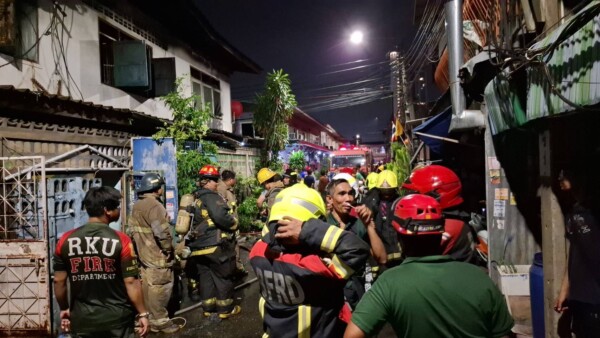 และจากการสอบถาม นายชรินทร์ นิ่งกลาง อายุ 42 ปี เป็นอาสาสมัครกู้ภัยมูลนิธิป่อเต็กตึ๊งรหัส สมเด็จ 013 กล่าวว่า ตนเข้ามาถึงก็ไฟไหม้ระดับ 4 -5 แล้วหลังแรกกับหลังที่ 2 แล้วผู้ได้รับบาดเจ็บคนนี้ชาวบ้านบอกว่าหล่นจากชั้นบนลงมาอยู่ในห้องน้ำ ผู้ได้รับบาดเจ็บอยู่ในบ้านหลังที่ 2 ที่ไฟไหม้หล่นลงมาจากชั้นที่ 2 อยู่ในห้องน้ำ และในขณะนี้เริ่มทำ CPR เพราะว่าผู้ไดรับบาดเจ็บไม่หายใจแล้ว อาสาสมัครมูลนิธิร่วมกตัญญูกำลังช่วยกันปั้มหัวใจอยู่ คาดว่าผู้ได้รับบาดเจ็บน่าจะสำลักควันเพราะตอนที่ตนมาถึงควันนี่เต็มซอยเลย