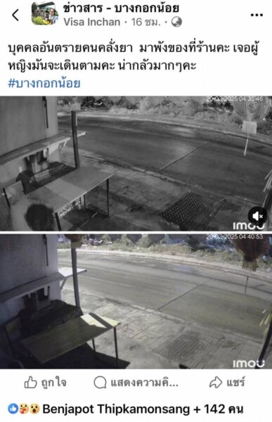 #บางกอกน้อย” ต่อมาผู้เสียหายผุดเพิ่มเติม ได้นำวงจรปิดเมื่อวันที่ 18 ก.พ. 68 คอมเม้นเพิ่มเติมระบุว่า “เข้ามาทำลายของที่ร้าน น่าจะใช่คนเดียวกันครับ อยู่ที่ร้านลูกชิ้นปลาบรรทัดทอง สาขาตลิ่งชัน ไฟแดงกลับรถวัดมะกอก”