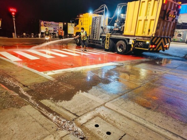 กทม. แจงใช้เครื่องฉีดน้ำแรงดันสูงล้างเครื่องหมายจราจรและทางข้าม 50 เขต -มีระบบดูดน้ำ ช่วยป้องกันอุบัติเหตุ