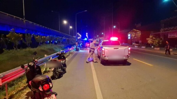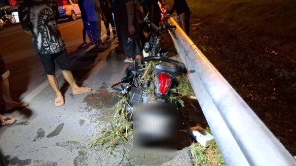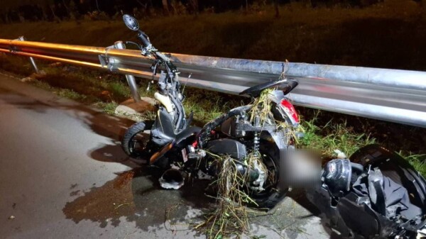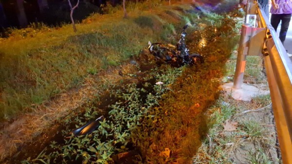 และเบื่องต้นจากการตรวจสอบที่เกิดเหตุพบซากรถจักรยานยนต์ยี่ห้อยามาฮ่า รุ่น แกรนฟีลาโน่ สีดำ ทะเบียน 7 ขศ 8938 กรุงเทพมหานคร ในสภาพพังเสียหายยับเยินทั้งคันตกลงไปอยู่ในคูน้ำข้างทาง เศษซากของรถจักรยานยนต์กระจัดกระจายเกลื่อนไปทั่วบริเวณดังกล่าว และที่ขอบทางด้ายซ้ายบริเวณเหล็กราวกั้นถนนยังพบกับกองเสื้อผ้าจำนวนหนึ่งพร้อมทั้งหมวกกันน๊อคแบบเต็มใบเปิดคางสีดำ 1 ใบตกอยู่ด้วย ซึ่งของที่พบทั้งหมดเป็นของผู้ขับขี่รถจักรยานยนต์คันดังกล่าว