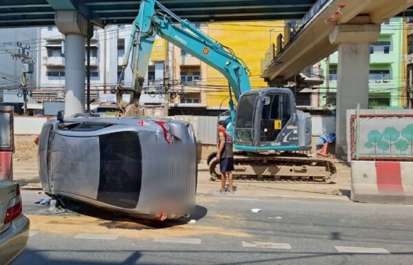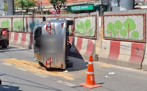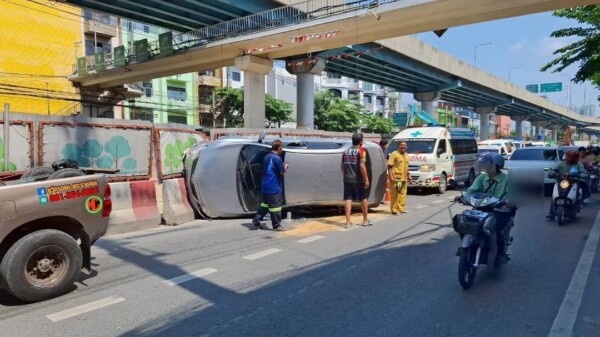 หนุ่มไรเดอร์ ขับเก๋งเสียหลักพลิกคว่ำ ดับสลด ย่านถนน สุขสวัสดิ์