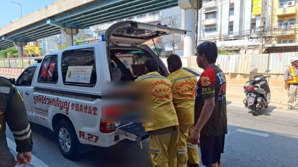 ส่วนทางด้าน นาย ธนัชพร อิ๋วสวัสดิ์ อายุ 24 ปี อาสาสมัครมูลนิธิร่วมกตัญญู กล่าวว่า ตอนที่รถมูลนิธิถึงเบื้องต้นมีประชาชนพลเมืองดีเขาทุบกระจกแล้วเขาก็เอาคนเจ็บออกมาอยู่บนถนนแล้วเขาก็เริ่มการทำ CPR ก่อนที่อาสาสมัครจะมาถึงประมาณ 2 นาที แล้วทีนี้หมอเขาก็มาแล้วเอาคนเจ็บขึ้นมาใว้บนฟุตบาทเพื่อจะได้ไม่กีดขวางการจราจร บาดแผลที่พบจะเป็นบริเวณส่วนหัวจะเป็นสีม่วงช่ำ แขนช้ำ น่าจะเป็นที่อากาศด้วยแล้วอีกอย่างคนเจ็บมีโรคประจำตัวด้วย เบื้องต้นแม่เขาแจ้งว่าเขาเป็นโรคหัวใจ คือเคยมีประวัติแบบนี้มาแล้วรอบนึง แต่ว่ารอบนี้ตนก็ไม่แน่ใจว่าโรคหัวใจกำเริบหรือเปล่า แต่ตอนที่อาสาสมัครมาถึงคนเจ็บออกมาจากรถหมดแล้วใครก็ไม่รู้ไปทุบกระจกเขาอาจจะหวังดีก็เป็นได้