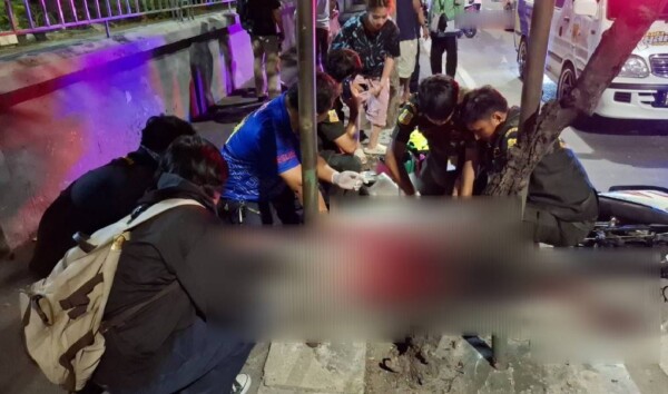 สาวปริศนาขี่ จยย. พุ่งชนคอกกั้นต้นไม้ริมฟุตบาทเจ็บสาหัส ย่าน ถนน พุทธบูชา