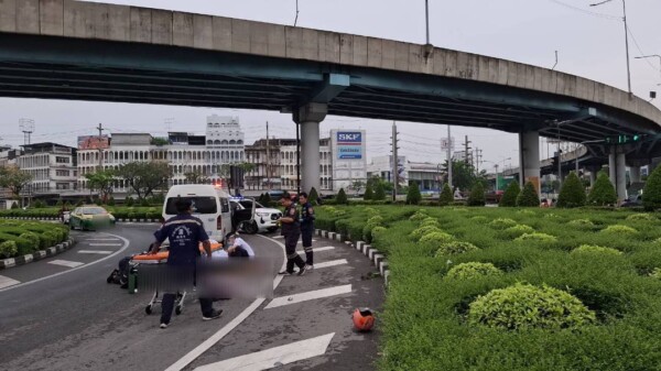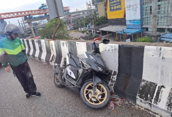รถเก๋งพุ่งชนหนุ่มขับไรเดอร์ตกสะพาน แยกบางประแก้ว