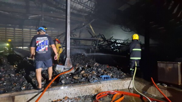สอบสวน นาย ภาณุพันธุ์ อายุ 28 ปี เจ้าของบริษัท ให้การว่า บริษัทตนนำเข้าเครื่องมือช่างไฟฟ้าไร้สายมาจากประเทศจีน ภายใต้แบรนด์ โอซูกะ โดยที่นี่เป็นโกดังเก็บและกระจายสินค้า พื้นที่ 1,300 ตารางเมตร เพลิงลุกไหม้จากทางด้านใน ซึ่งเป็นที่เก็บเครื่องมือช่างไฟฟ้าไร้สาย คาดว่าจะเกิดจากการลัดวงจรไฟฟ้าจากแบตเตอรี่ แล้วลุกลามอย่างรวดเร็วไหม้จนหมดโกดัง ตนทำธุรกิจมาได้ประมาณ 1 ปี และทำประกันภัยอัคคีภัยไว้ด้วยขณะเกิดเหตุเป็นช่วงเลิกงาน โดยปกติจะเลิกงานช่วง 5 โมงเย็น แต่วันนี้พนักงานอยู่ทำโอทีถึง 6 โมงเย็น ทำให้ไม่มีใครอยู่ด้านใน มีเพียงพนักงานบางส่วนยืนเล่นอยู่บริเวณด้านหน้าบริษัท จู่ ๆ ได้ยินเสียงคล้ายระเบิดภายในโกดังจุดเกิดเหตุ ลักษณะคล้ายแบตเตอรี่ระเบิด จนเกิดไฟลุกโหมอย่างรุนแรง จึงโทรแจ้งเจ้าของบริษัททราบ โดยไม่ทราบสาเหตุ ประกอบกับตอนเกิดเหตุที่บริษัทไม่มี รปภ. แต่ใช้ระบบสัญญาณเตือนภัยซีคอม