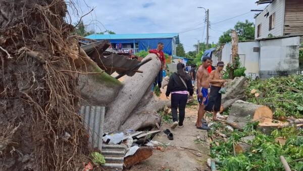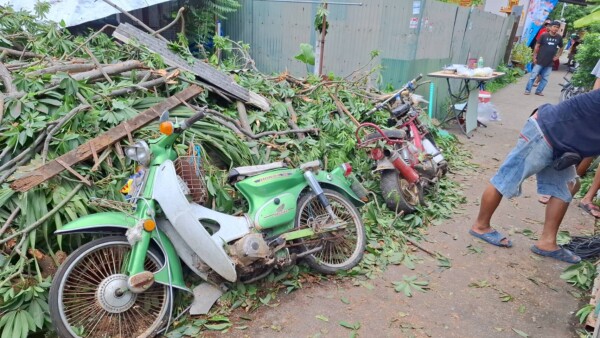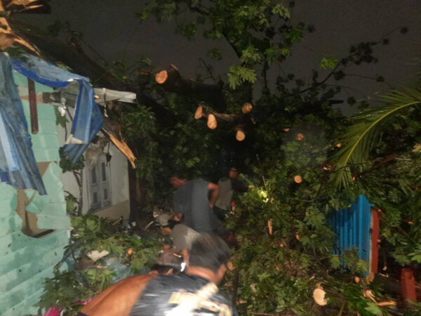 ต้นนุ่นขนาดใหญ่อายุเกือบ 100 ปี ล้มทับบ้านเรือนเสียหาย 3 หลัง ย่านประชาอุทิศ