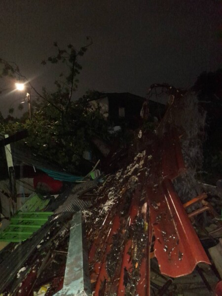 ซึ่งเหตุการณ์ดังกล่าวนั้นเกิดขึ้นเมื่อช่วงเย็นประมาณ 18.00 น. ของเมื่อวานนี้ ( วันที่ 31 พฤษภาคม 2568 ) ได้เกิดฝนฟ้าคะนองลมกระโชกแรง จึงเป็นเหตุให้ต้นนุ่นขนาดใหญ่อายุเกือบ 100 ปี ซึ่งเป็นต้นไม้ขนาดใหญ่ซึ่งอยู่คู่กับชุมชนแห่งนี้มายาวนานมากได้ล้มทับบ้านเรือนประชาชนพังเสียหายไปถึง 3 หลังคาเรือน และจากเหตุการณ์ดังกล่าวส่งผลให้มีผู้ได้รับบาดเจ็บเป็นเด็กชาย อายุ 11 ขวบ ซึ่งทราบต่อมาชื่อน้อง ซูโม่ ได้รับบาดเจ็บเพราะถูกฝ้าเพดานตกมาโดนที่ศรีษะ อาสาสมัครกู้ภัยมูลนิธิป่อเต็กตึ๊งช่วยกันนำส่งโรงพยาบาล IMH ธนบุรี อย่างเร่งด่วน จนกระทั่งขณะนี้ยังไม่ออกจากโรงพยาบาลเพราะทางทีมแพทย์ให้นอนดูอาการอยู่ที่โรงพยาบาล