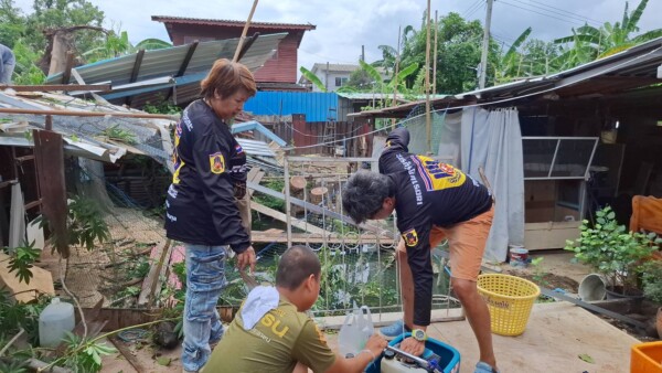 และจากการสอบถาม นาย นพ อิ๋วสวัสดิ์ อายุ 42 ปี ประธาน อปพร.เขตราษฎร์บูรณะ กล่าวว่า ตนรู้ข่าวว่ามีต้นไม้ล้มทับบ้านเรือนประชาชนในช่วงเวลา ประมาณ 18.30 น. ที่ตนได้รับข่าวแล้วก็ทีมงานเข้ามาตอนที่ตนเข้ามาถึงก็พบว่าต้นไม้ดังกล่าวทับบ้านเรือนประชาชนเสียหายไปแล้ว 3 หลัง เมื่อคืนเข้ามาไฟดับหมดเลยมืดมากแล้วยังมีฝนด้วย พอตนและทีมงานมาถึงก็ยังทำอะไรไม่ได้มาก ตนและทีมงานก็นำอุปกรณ์ส่องแสงสว่างมาลงหน้างาน ส่วนอะไรที่พวกเราทำได้เราก็ทำแบบตัดกิ่งไม้หรือช่วยกันเคลียร์ทางเดินเท้าเราก็พยายามช่วยกันทำไป อันไหนที่เราพอจะทำได้เราก็ทำไปก่อนแล้วทีมงานของสำนักงานเขตก็เข้ามาช่วย ส่วนวันนี้ตนได้นำอุปกรณ์เข้ามาอีกเพราะว่าเบื้องต้นรากที่มันล้มทับบริเวณรากของต้นนุ่นก็จะมีดินเกาะอยู่เยอะตนก็นำเครื่องสูบน้ำเข้ามาฉีดที่รากเพื่อจะได้ตัดกิ่งไม้ให้มันเล็กลง รากให้มันเล็กลงแล้วเราก็จะสามารถขุดออกได้หมดเลย คาดว่าวันนี้น่าจะเสร็จในช่วงบ่าย 3 – บ่าย 4 โมง เย็นเพราะว่าตอนนี้ได้มีการนำอุปกรณ์หนักเข้ามาแล้วและก็กำลังทยอยเข้ามาช่วยเหลือประชาชนอยู่อย่างต่อเนื่อง
