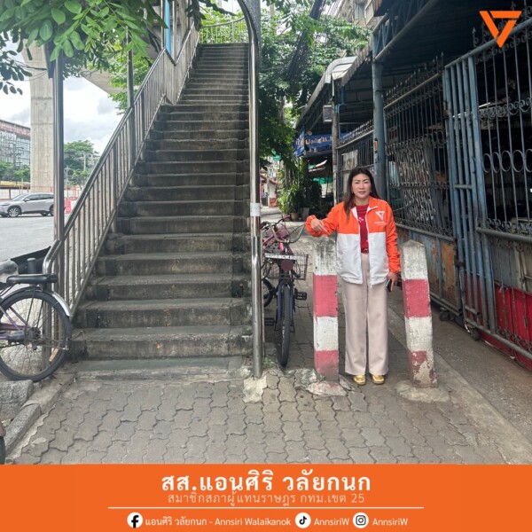 5.ทางเท้าหน้าซอยรุ่งเรือง มีแผงกั้นรถจักรยานยนต์ ซึ่งทำให้ความกว้างของทางเท้าแคบลง ส่งผลทำให้ผู้ใช้รถเข็นวีลแชร์ไม่สามารถสัญจรได้ จึงอยากให้นำแผงกั้นในส่วนนี้ออก และใช้กล้อง AI ในการป้องกันปัญหารถจักรยานยนต์วิ่งบนทางเท้า ในส่วนนี้แอนจะประสานหน่วยงานที่เกี่ยวข้องเพื่อดําเนินการ