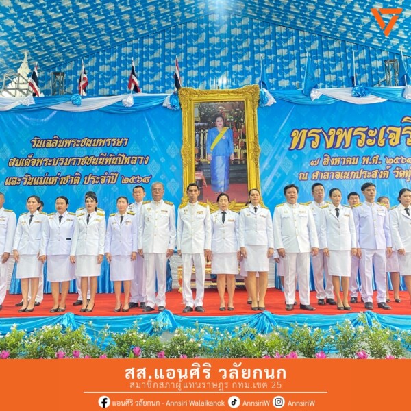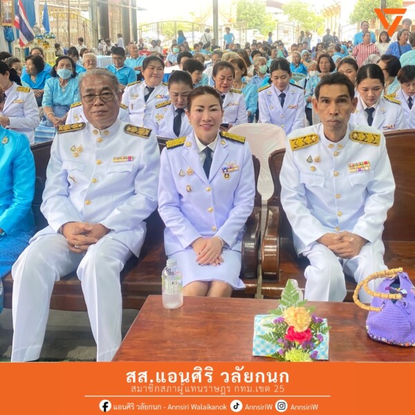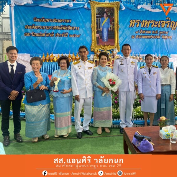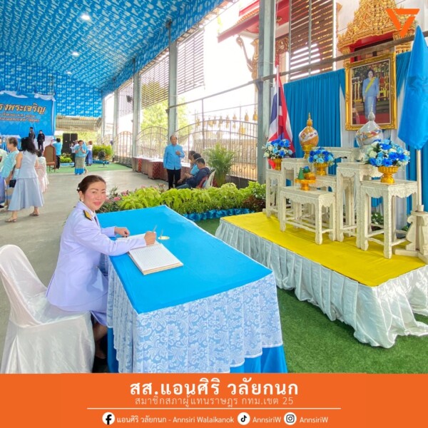 สส.แอน ได้รับเกียรติเข้าร่วมพิธีลงนามถวายพระพรชัยมงคล เนื่องในวันเฉลิมพระชนมพรรษา สมเด็จพระนางเจ้าสิริกิติ์ พระบรมราชินีนาถ พระบรมราชชนนีพันปีหลวง และร่วมกิจกรรมเนื่องในวันแม่แห่งชาติ โดยมีคุณพงค์ศักดิ์ พูลยรัตน์ ผู้อำนวยการเขตทุ่งครุ พร้อมเจ้าหน้าที่จากหน่วยงานต่างๆ เข้าร่วมในงานอย่างพร้อมเพรียงภายในงานมีพิธีตักบาตรทำบุญเพื่อความเป็นสิริมงคล การมอบรางวัลคุณแม่ดีเด่น และพิธีวางพานพุ่ม